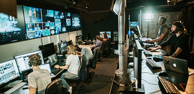 サムスンホールがICF教会のために常設しているライブプロダクション・システムは、5台のBlackmagic URSA Mini 4.6Kを中心に構成されている。さらに6台のBlackmagic Studio Camera、2台のMicro Studio Camera 4Kも使用され、各カメラはATEM Talkback Converterを装備。カメラのライブフィードは、ATEM 2 M/E Production Studio 4KおよびATEM 2 M/E Broadcast Panelを備えたホールのメイン・プロダクション・ギャラリーにルーティングされる。