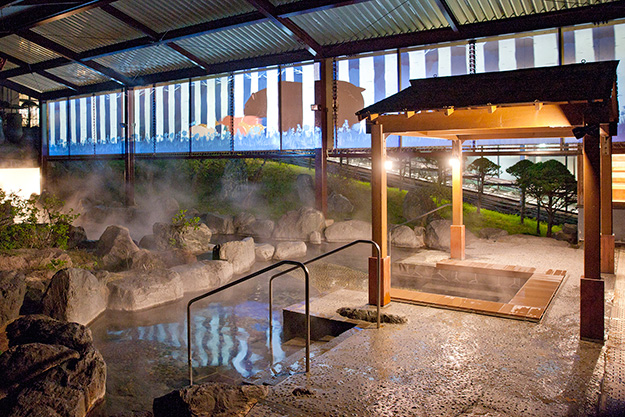 大露天風呂ゾーンにて映し出されるプロジェクションマッピングの映像は、横22m×高さ3mのスクリーンで白樺湖周辺に広がる雄大な自然を表現したオリジナルストーリー。露天風呂に浸かりながら、映像と音楽、光が織りなす空間を楽しめる。上映時間は6月30日から毎日20:00/20:20/20:40の計3回で1回約10分間。