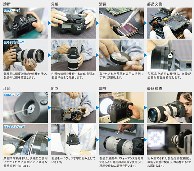 あんしんメンテのオーバーホールでは、同社修理センターの豊富な経験と知識を持つ技術者が、製品を分解し内部の状態まで細かく検査・清掃、再調整を行うことで製品本来の精度・機能を発揮できるように回復する。日常的に撮影を行うユーザーや、仕事で機材を使用するユーザーなど、特にカメラとレンズの使用頻度が高いユーザー向けサービスとなっている。詳細は同社Webページより。