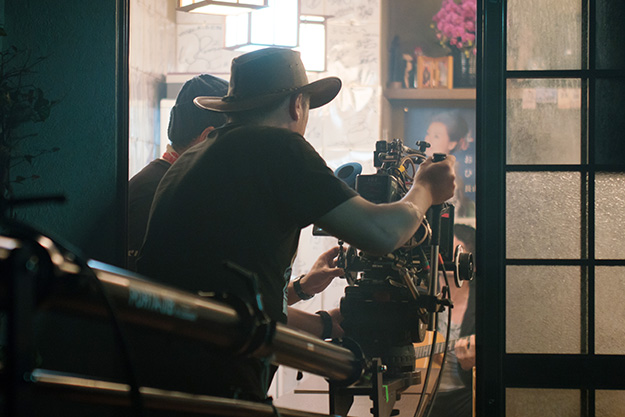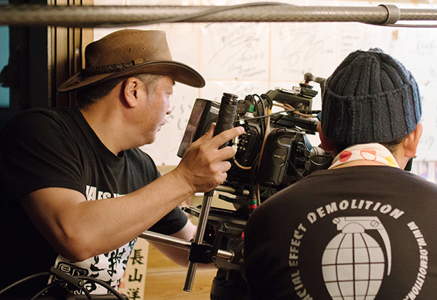 今井氏:この作品では、実在の「ふじ」とそっくりな店内をセットで再現しました。10人も入ればいっぱいの小さな店内なので、狭い場所でも入れるBlackmagic URSA Miniのコンパクトさは助かりましたね。また、ジンバルに乗せての撮影も何度かありましたが、カメラがすでにコンパクトでバランスが取りやすいので、わざわざジンバルの撮影のために小さなカメラを変える必要もなかった点も効率的でした。