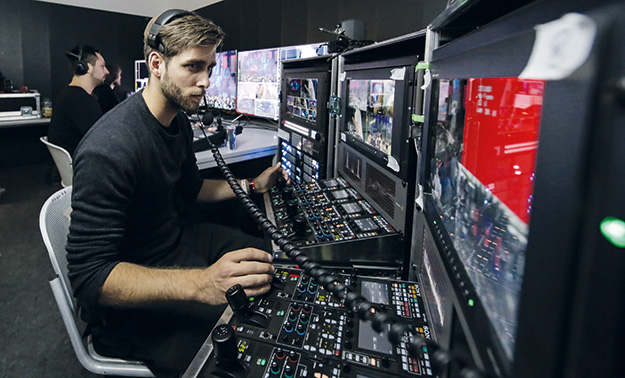 アスモス氏:イベント中、あらゆる端末製品に同等の高品質ビデオプログラムを配信することに重点を置いています。そうすることで、視聴者は家にいてもアリーナにいるのと同じ体験ができるのです。これを実現するため、私たちは9台のカメラと強固なライブプロダクション・デスクを使用して、膨大な量のビデオ入力、グラフィック、次戦収録したDJ/VJのコメントなどを扱っています。これでライブビデオ監督が没入型の体験を作り上げることを可能にしています。