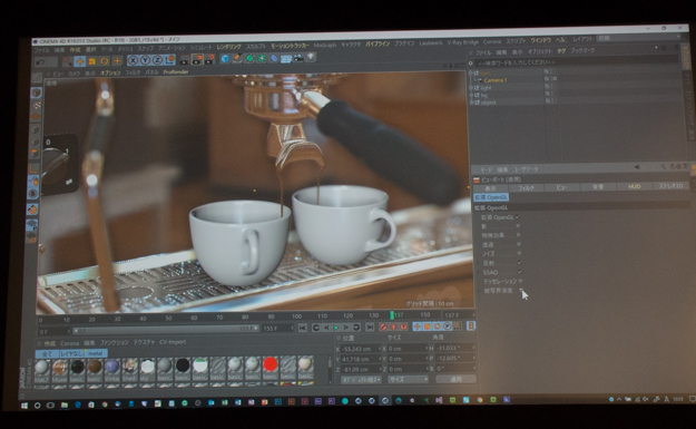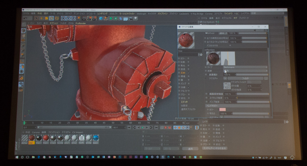 R19のビューポートは、リアルタイムに反射を計算する「スクリーンスペースリフレクション」を導入して反射の描画が大幅に向上した。スクリーンスペース反射やエリアライト反射、ラフネスマップの描画、バンプの複数レイヤーの描画の変更もビューポートでリアルタイムに確認が可能で、作業をしながら常にレンダリングの最終結果に近い状態をビューポートでリアルタイムに確認できるようになった。レンダリングをしてもビューポートとの差は感じられないほど描画は向上しているという。