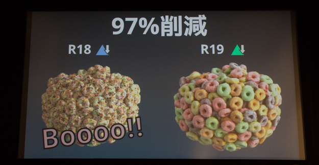 R18にはポリゴンリダクション機能として「ポリリダクションデフォーマ」が搭載されていたが、R19では「ポリゴンリダクションジェネレーター」に刷新された。UVを使ったモデルにR18のポリリダクションデフォーマーを適用するとUVに不具合が発生し、UVを保持したいという作業には向かなかった。R19のポリゴンリダクションジェネレーターは、UVをきちんと保持したままリダクションに対応するようになった。