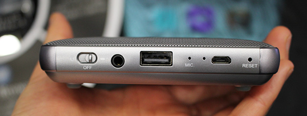 M-i1は本体サイズ、幅105mm奥行105mm高さ22mm、質量約235gの手のひらサイズのプロジェクター。内蔵メモリーに保存したデータや、USBメモリー内のデータを本体上部のタッチパッド操作により呼び出し、PCレスで映像投写が可能。