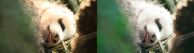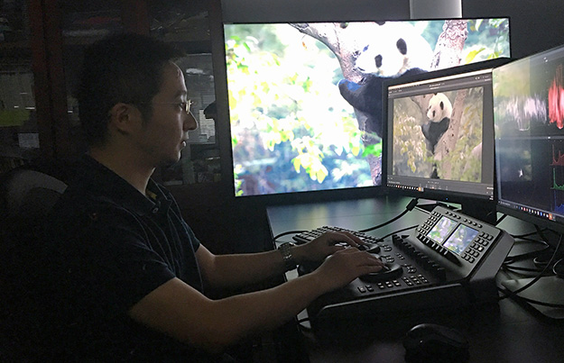 パンダにフォーカスしたシーンではプライマリーコレクションの後、野生のパンダの毛皮が黄色っぽくなりパンダが汚れているように見えてしまう問題を解消するため、Luo氏は「輝度vs彩度」カーブと「色相vs彩度」カーブをPower Windowトラッキングおよびキーフレーム機能と併せて使用し、毛皮のサチュレーションを抑えてパンダを綺麗なルックにした。