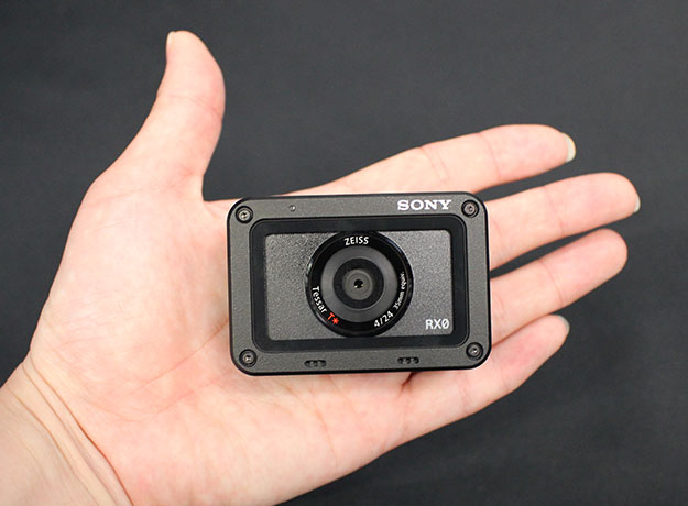 RX0は、メモリー一体1.0型積層型CMOSイメージセンサーExmor RSと、広角レンズZEISS Tessar T* 24mm F4.0(固定)、画像処理エンジンBIONZ Xの搭載により、有効約1530万画素のデータを高速に処理。水深10mの防水性能や、2.0mの落下耐性、200kgftの耐荷重という堅牢性を、約幅59.0mm×高さ40.5mm奥行×29.8mm、質量約110g(バッテリー、メディア含む)の小型軽量ボディで実現。シンプルなスクエアフォルムとボディ前面の中心部にレンズを配置したデザインは、撮影や設置の自由度を高めるとしている。