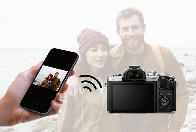 またWi-Fi機能により、スマートフォンアプリ「OLYMPUS Image Share」を使用してスマートフォンやタブレットに撮影した画像を転送し、SNS等にアップロードが行える。カメラの背面液晶に表示されるQRコードをスマートフォンに読み込ませて接続可能。スマートフォンをリモコンとして使用して写真撮影を行う機能を搭載しているほか、撮影場所を地図データ上に表示するためのGPS情報を追加可能。