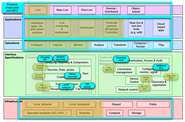 AMWAは、IPライブプロダクションシステムで使うIS-04/IS-05/IS-06といったネットワークメディアオープン仕様(NMOS)を開発している。IS-05は放送機器ベンダー間の相互運用性を確保し、システム統合を簡素化するためのオープンな仕様。これまでに20社以上の企業が仕様を実装しており、APIを含めて開発途中のプロジェクトでも、GitHubを介してすべてオープン公開している。
