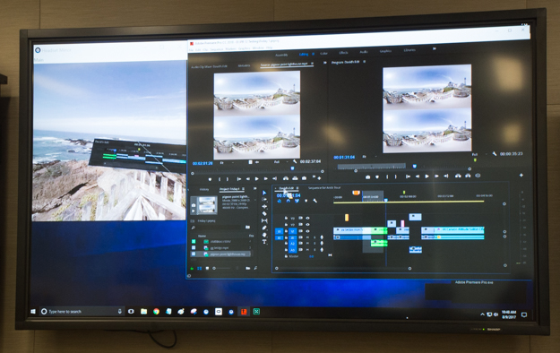 ヘッドマウントディスプレイを使ってVR空間の中で編集作業に対応する。次期バージョンではレンダリングせずにMercury Transmitの出力をヘッドマウントディスプレイで確認ができる。再生などのナビゲーションも可能で、Premiere Proからヘッドマウントディスプレイをしたままタイムラインのレビューが可能になる。