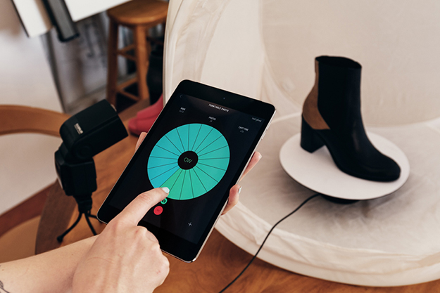 Product Turntableは、Genie miniに取り付け、その上に被写体を置いて回転させることで、商品を360°回転させたビデオや、様々な角度からの写真を撮影可能。GenieAppをアップデートすると、プロダクトターンテーブル用のメニューが表示され、自動でビデオまたは写真を撮影できる。同梱品は、ターンテーブルプラットフォーム、ターンテーブルベース、リンクエクステンションケーブル(別途リンクケーブルが必要)、バックグラウンドディスク(黒・白各1枚)、レンズクロス、セットアップガイド(英語)。