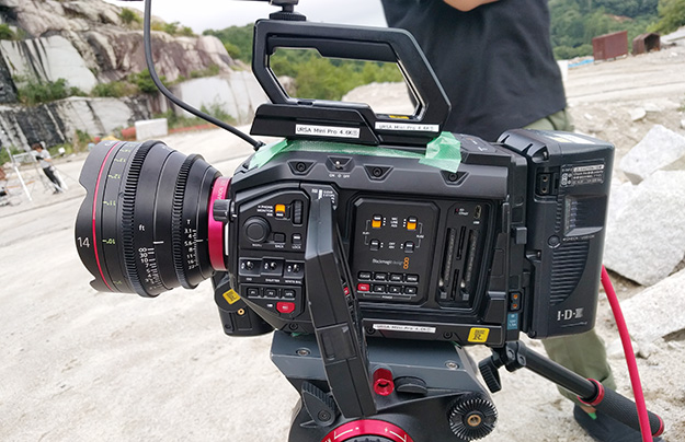 URSA Mini Proの良さはダイナミックレンジの広さや画質はもちろんですが、ほかにもカメラの取り回しの良さが挙げられます。本体だけでも撮影できてしまう手軽さはかなりメリットですね。カメラにいろいろ周辺機器をつけないといけないと撮影規模も大きくなってきてしまい、1人でよかったはずのアシスタントが2人必要になることもあります。そういった面でもURSA Mini Proはかなり使いやすいカメラですね。