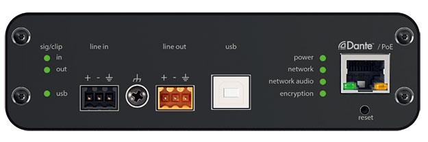 ANIUSB-MATRIXは、最大4系統のDanteオーディオと1系統のアナログ信号、1系統のUSBオーディオを自由に入出力可能なインターフェース。USBオーデイオに対応したBlueJeansや、スカイプなどのWeb会議システムに手軽に接続可能だとしている。マトリクスミキサーや、パラメトリックイコライザー、リミッターも搭載。標準的なイーサネットケーブル1本でPoEによる電源供給、音声送出、制御を行う。ブラウザベースのソフトウェアにより、PC上からモニタリング、制御が可能。1/3ラックのコンパクトな筐体は、付属のマウント金具を使用することでテーブルの下などに固定することもできる。