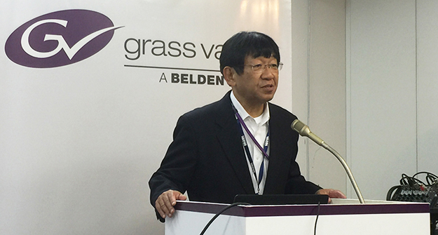 10月25日、東京・日本橋のグラスバレー社にてプレス向けの発表会が開催された。冒頭、代表取締役の北山二郎氏による「Inter BEE 2017」の出展概要が説明された。今年は中規模サイズのブースをホール3に出展。グラスバレーは、BELDENグループ関係各社とそれぞれ隣接したかたちでの出展となる。主に放送関係のシステムが中心に各製品が展示される。詳細は、ニュースでお伝えした。