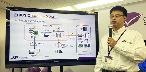 実際にAmazon AWS上に構築されたEDIUS CloudでEDIUS Pro9をデモ。MacなのにEDIUS Pro 9が稼働しているのも面白い