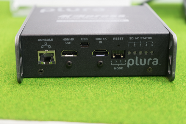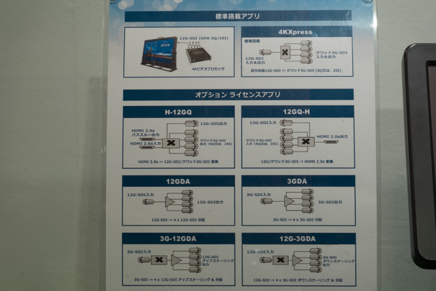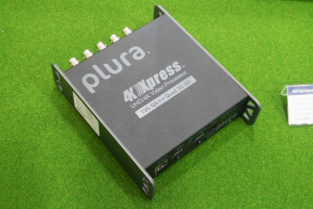 こちらも12月下旬発売予定の新製品で、米国で多機能モニターの大手メーカーとして有名なPluraの12G-SDIマルチフォーマット対応ビデオプロセッサー「4KXpress」だ。SDIの12G-SDIの入出力兼用のポートが5ポートとHDMIの入出力を各1系統ずつ搭載し、標準状態では12G-SDIを入力してクワッドの3D-SDIに変換したり、その逆のクワッド3G-SDIに入力した12G-SDIに変換できる。