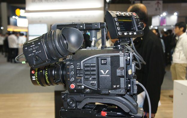 4KカメラレコーダーVARICAM LT。スーパー35mmセンサーを搭載しており、EFレンズまたはPLレンズマウントに対応可能。広ダイナミックレンジおよび広色域、デュアルネイティブISO(ISO800/ISO5000)などに対応し、記録コーデックはAVC-Intra 4K/2K/HD、Apple ProResをサポートしている。また、デュアルコーデック記録によるメインとプロキシファイルの同時記録、インカメラカラーグレーディングなどの機能をもつ