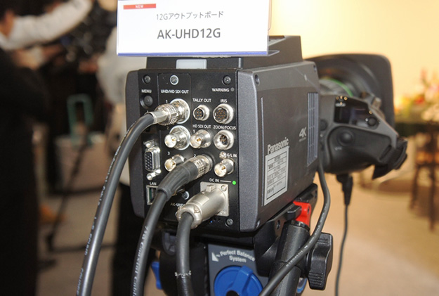 12G-SDIに対応したライブスイッチャーAV-HS8300や、4KスタジオカメラAK-UC4000、マルチパーパスカメラAK-UB300GJ、新発売のパームカメラAG-AC30などの4K対応カメラやスイッチャーの新製品を多数出展していた。8Kに関しては、すでにNHKと共同でP2メモリーカードを記録媒体として使用したレコーダーを発表しているが、今回新製品として8KスーパーハイビジョンレコーダーAJ-ZS0580を出展した。8Kのカメラも試作は進んでおり、製品としての作りこみ段階とのことで、近いうちに披露されるのではないだろうか。
