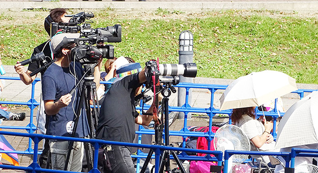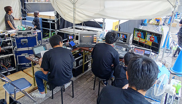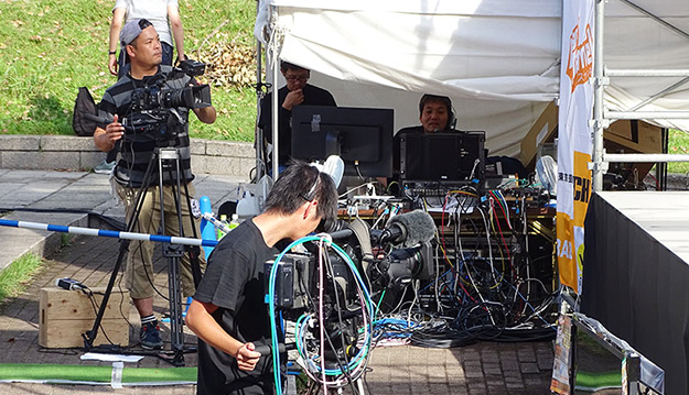 今回のメ~テレ秋まつり2017は、総務省「ブロードバンドの活用による放送サービスの高度化に向けた技術等検証事業」の一環として実施し、KDDI株式会社、株式会社ネクストウェーブと株式会社コミュニティネットワークセンターが、本プロジェクトの共同実施企業として参加した。現場では、イベント会場内の「光の広場」に6台の4Kカメラを設置し、ステージで繰り広げられるイベントを撮影する。