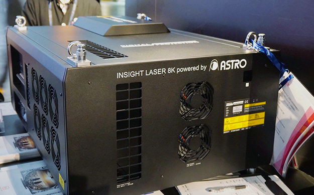シャープブランドの8Kカムコーダー8C-B60Aは8K60p非圧縮Quadlink 12G-SDI出力を備え、どちらかと言うと収録というよりは8Kライブ配信に目を向けている。8Kや今後それを超える解像度を備えたカメラは、映画のような完パケ作品を志向するものと、ライブビューイングやスポーツ中継などを志向するものの両方があって然るべきだ。一方の表示装置側では、アストロデザインが8K 25,000ルーメンのレーザープロジェクターを参考出品した。これは8Kや更にそれ以上の解像度は大画面が適していることもあり、その実現にはプロジェクターとディスプレイの両方の方向性がある。