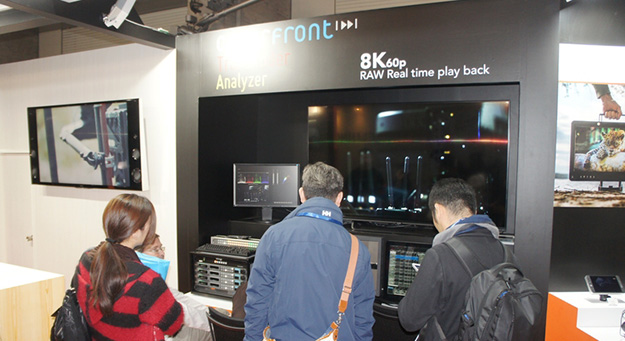 RED Digital Cinemaのほか、レコーダーやモニター、ケージ、レンズなど、デジタルシネマ関係の各種機材を扱うRAIDは、RED Digital Cinema社の最新センサーであるMONSTROセンサーを搭載したRED WEAPON MONSTRO 8K VVや、Cooke Optics社のレンズPANCHRO Classic、ServiceVision社のフルフレーム対応Scorpiolens ANAMORPHIC、SmallHD社の最新モニター502 High Bright、COLORFRONT社の8K対応Analyzerシステム、HEDÉN社のVLC-1L/VM35およびCMOTION社のCPROのレンズコントロールシステムなどの新商品を中心に各種映像機材を出展した。これらの製品は国内初出展で、このほかにも新たに代理店契約を締結したメーカー製品としてRT Motion社のRED製品対応リモートレンズコントロールシステムと、Digital Sputnik社のDSシリーズ照明の製品も展示していた。