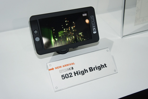 SmallHD社の最新モニター502 High Bright。野外でも利用しやすい5型の高輝度ディスプレイで、HDR対応のほか波形や3D LUTも搭載している。パネルの輝度は2200nits、コントラスト比1000:1となっており、1920×1080表示が可能なほか、色深度は10bitで視野角170°