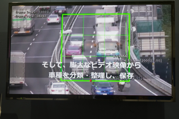 ブースのデモの映像より。通行中の車を撮影し、AIにより車種を判別