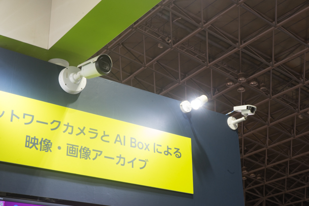 Axisのネットワークカメラを展示。S3 APIを追加開発し撮った映像を直接HYPERSTOREに記録ができるという