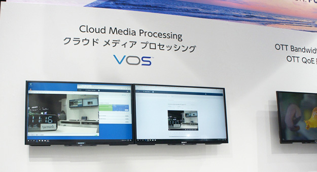 クラウドメディアプロセッシングのコーナーではクラウド上のエンドツーエンドメディアプロセッシングによるワークフローをデモした。VOS CloudやVOS 360 SaaSソリューションにより、放送・OTTサービスの準備立ち上げ期間をわずか数時間に短縮し、迅速なサービス開始を実現可能で、プレイアウトやライブ配信、タイムシフト視聴、ビデオオンデマンド(VOD)などをクラウドネイティブのワークフローで解決することが可能