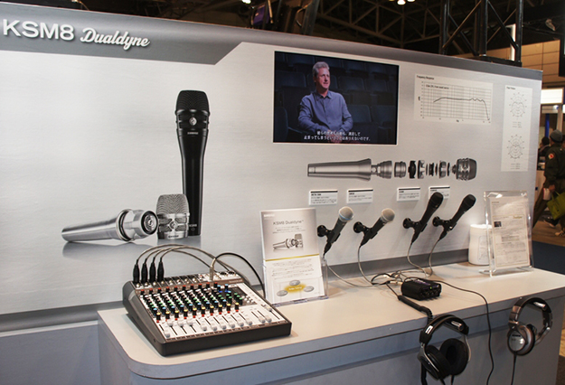 その他にも磁気回路の上下にダイヤフラムを配置したデュアルダイヤフラム設計のダイナミックマイクKSM8や、指向性を任意に設定できる天井設置型とテーブル設置型の2タイプのデジタルアレイマイクロホンMicroflex Advanceなどを出展した。