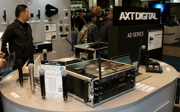 AXT Digital ワイヤレスシステムのコーナー。信号安定性と明瞭度の高い優れた音質に加え、用途に合わせたシステム構成が可能。送信部はハンドマイク型のADX2およびAD2が、ボディパック型はADX1、ADX1M、AD1があり、受信機はAD4DとAD4Qの2機種および周波数管理プロセッサAXT600Jがラインナップされている