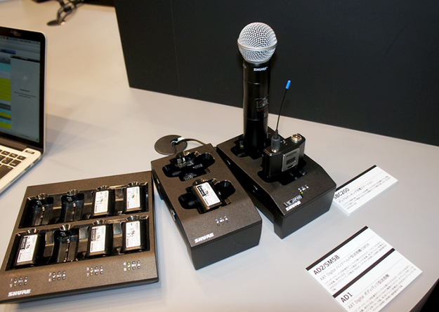 AXT Digitalワイヤレスシステムはアナログからデジタルへの切り替え時期ということもあり、今回の出展で最も力を入れているようで、広いスペースをとってラインナップを披露していた。特にADX1M送信機は今までのワイヤレス送信機にはない小型・軽量化と、ボディパックとして使いやすい形状デザインを採用しており、注目の製品といえる。