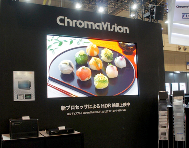 ヒビノクロマテックDivのChromaVision HCV12によるHDR映像の上映。LEDコントローラーLC-S4KによりHDRに対応