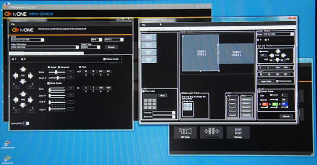tvONE 1T-C2-750はWindows Control Panelソフトウェアが付属しており、スケーラーの解像度設定やピクチャーinピクチャーの表示設定などが可能。なお、入力はデジタル/アナログ入力対応のDVI-I入力×2となっている