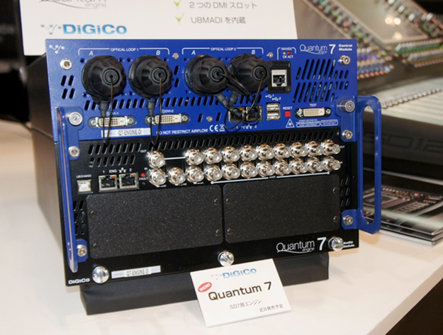 DiGiCo社のデジタルミキシングコンソールSD7のエンジンQuantum 7。ミキシングコンソールSD7はDiGiCo社のフラッグシップモデルで、電源やエンジンモジュールを2重化することが可能となっている。今回SD7のエンジンモジュールとして新製品が出展されていた