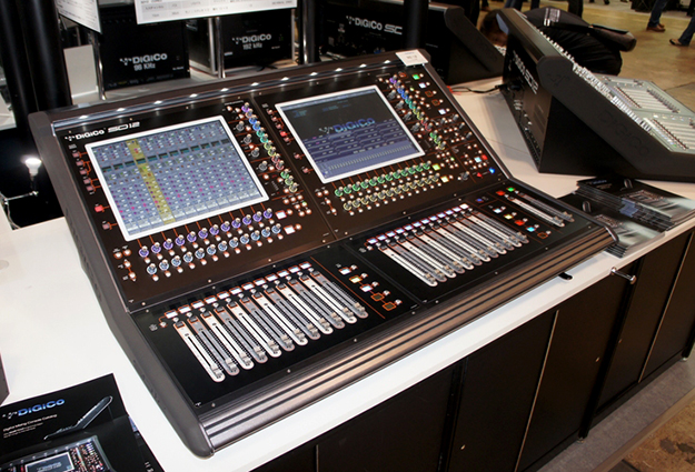 デジタルミキシングコンソールDiGiCo社SD12。15型のタッチスクリーンを2面搭載しており、直感的かつ素早いオペレーションが可能。ライトニングバーやエンコーダー周囲にフルカラーLEDを採用しており、屋外での視認性を確保しているほか、PCレコーディングやプレーバックを簡単に行えるUB-MADIを搭載している