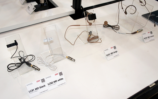 AKG社の超軽量コンデンサー型マイクロホンMicroLiteシリーズ。形状や指向性、色の異なる全16モデルをラインナップしており、オプションの端子アダプターを使用すれば他社製ワイヤレスシステムと組み合わせて使うことも可能。衣服装着用ラベリアLC81 MD/LC82 MDやイヤーフックEC81 MD/EC82 MD、ヘッドウォーンHC81 MD/HC82 MDなどのラインナップを出展