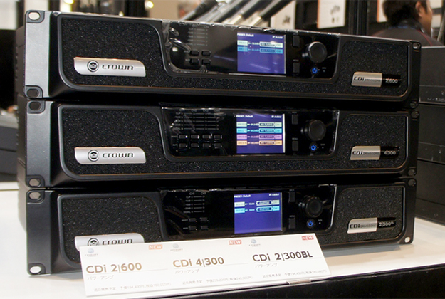 今回新製品として写真のCROWN CDi 2/600、CDi 4/300、CDi 2/300BLなどを出展。DCiシリーズはHiQnetプロトコルのネットワーク機能が利用可能で、運用状況の監視や設定の変更を一元的に行えるため、多系統の出力回線を持つ音響設備を効率的に構築・運用することができる。なお、チャンネル数、出力パワーの異なる10モデルがラインナップされている