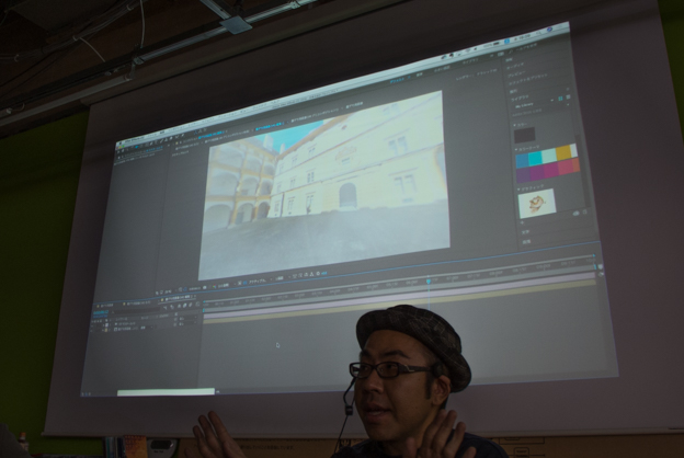 山下氏は、After EffectsはVRコンポエディターの機能を使って撮影時に揺れてしまったVRコンテンツにスタビライズをかける方法や外部プラグインであるElement 3DのオブジェクトをVR空間の中に配置したり、最終的に書き出しのポイントなどを解説した。