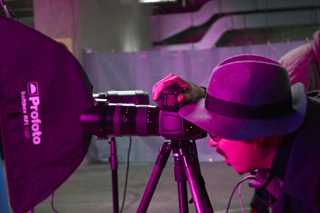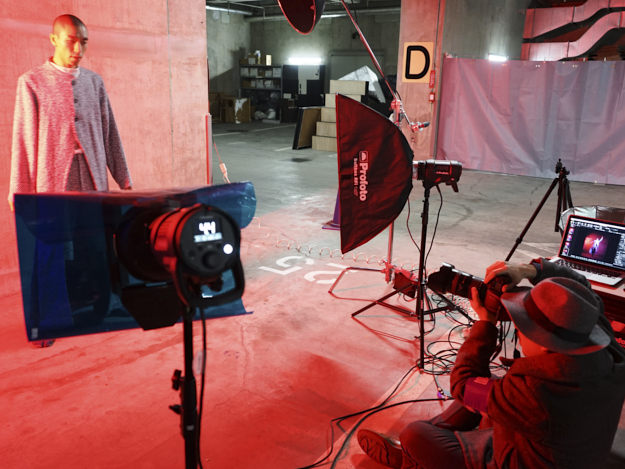 ARRIのSkyPanelシリーズやプロフォトの3台のD1モノライトストロボを使って撮影が行われていた