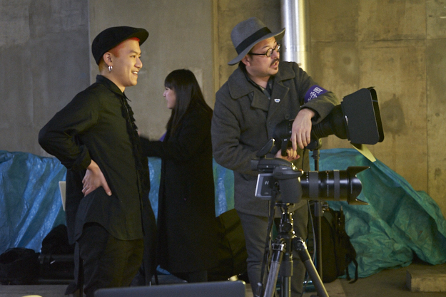 アードディレクションをする院生のRickyy Tsztung Wong氏(左)とカメラマンのデレック槙島氏(右)