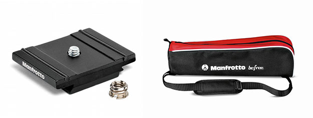 新たなアクセサリーとして、befreeアドバンス、新befree liveに付属している三脚バッグ「MB MBAGBFR2」(希望小売価格:税別1,920円)と、befreeアドバンスに付属しているプレート「200PL-PRO」(税別:3,600円、2018年3月20日発売)も発表された。200PL-PROは、マンフロットの200PL対応雲台に加え、アルカスイス互換雲台にも装着可能。1/4”ネジと、3/8”に変換する「大小リング」が付属している。
