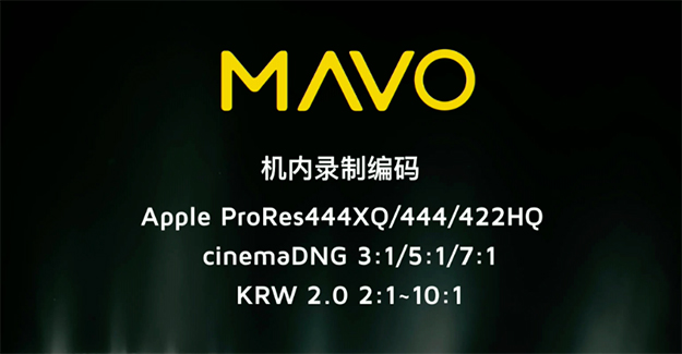 MAVOシリーズは、アップルの「ProRes」や、Kinefinityの圧縮RAW形式「KRW」、「CINEMA DNG」の3種類の中間コードフォーマットに対応。ProResは、クオリティの高いProRes444XQや444、422HQをサポート。Cinema DNGは3:1、5:1、7:1、KRWは2:1から10:1の圧縮RAWを選択可能。