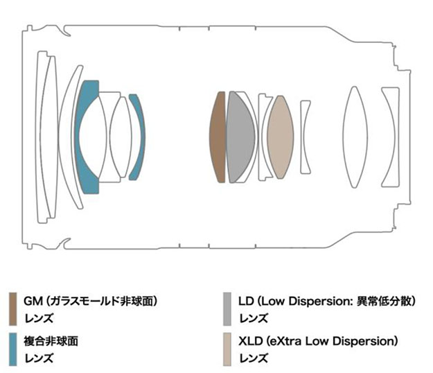 52°58′-21°05’(APS-Cサイズ相当ミラーレス一眼カメラ使用時)- レンズ構成:12群15枚