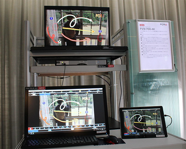 4K対応ビデオライター「FVW-700-4K」は、挿入ポイントを映像で確認しながら、PCのタッチパネルモニターや、Wi-Fi接続したタブレット端末をなぞることで文字や図形を描画可能。テレビ番組でのお天気コーナーや、スポーツ解析の番組で活躍しそうだ