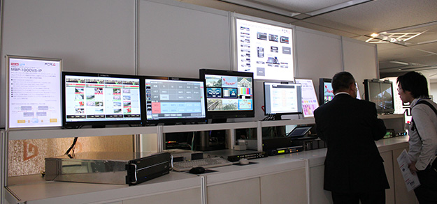 ベースバンド/IP混在総合管理・監視・制御ソフトを展示。SDI(ベースバンド)映像機器とIP映像機器の混在する環境で、各種映像機器統合的に制御・監視するためのソフトウェアを展示