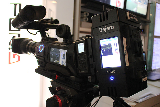 ライブストリーム用モバイルトランスミッタ「Dejero EnGo」は、高品質ビデオをエンコードし、複数IPネットワーク上で伝送。SDIやHDMIでカメラに直接接続か、バックパックで着用できるので、ニュース取材、スポーツ報道、ライブイベントを、遠隔地から移動しながら放送するのに最適だとしている