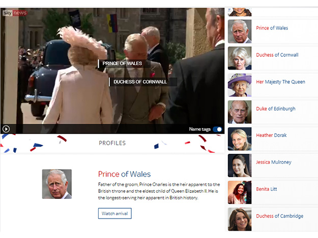 ライブ配信では、モバイルアプリに新しいライブ要素を取り入れた。「Royal Wedding:Who’s Who」は、機械学習(ML)と拡張機能(人工知能AI)を使用し、Aリストの有名人ゲストがチャペルに到着した際、ゲストの顔を適切に識別し、そのゲスト情報をリアルタイムに提供した。