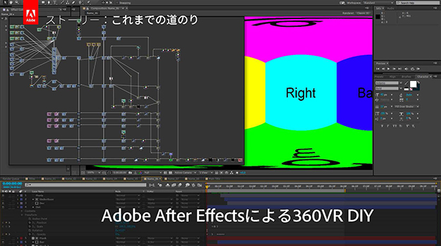ツール側に関しても、After Effectsで複雑なプロセスを構築してゼロから作り上げなければならず、「今見ても自分が作ったプロジェクトにもかかわらずわけがわからないですが、このようなプロジェクトを作るしかありませんでした。しかし、これがはじまりでした」と振り返った。