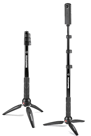 ミニ三脚「PIXI EVO」の特別バージョンに4段アルミニウムポールが取り付けられたキット。ミニ三脚部は脚の長さや開脚角度が調節可能。アルミニウム製の4段エクステンションポールを伸ばすと、最大143cmの高さに達する。床に置いて360°VR撮影ができ、エクステンションポールを取り外してセルフィースティック(自撮り棒)として使用することも可能。ポール単体(MPOLEVR)でも発売。