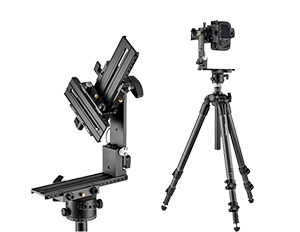 一眼レフカメラによる多重列パノラマ写真撮影向けの雲台。VR撮影ベース・ブーム、あるいは三脚上に取り付けて使用。